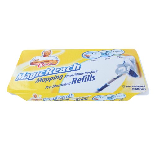 Wave your wand and watch your floors become magically clean before your very eyes except with no hocus pocus. The only wand you'll be waving is the Mr. Clean MagicReach. Thanks to its telescoping pole that extends up to four feet it easily cleans hard to reach areas. No more bending and straining, or getting down on your knees to get every last corner clean. And Leave the mop and bucket and endless bottles of cleaner and solvent in the closet. Take advantage of this great deal today, and start cleaning with ease. Follow all manufacturer directions for best results. Pack of 12 replacement Mopping and Floor pads. Do not use on natural stone, non-sealed tiles, unfinished, oiled or waxed wooden boards or carpet. Test in an inconspicuous area with desired pressure before use on old, worn, or delicate surfaces like chrome, plastic or cultured marble. RelateItems